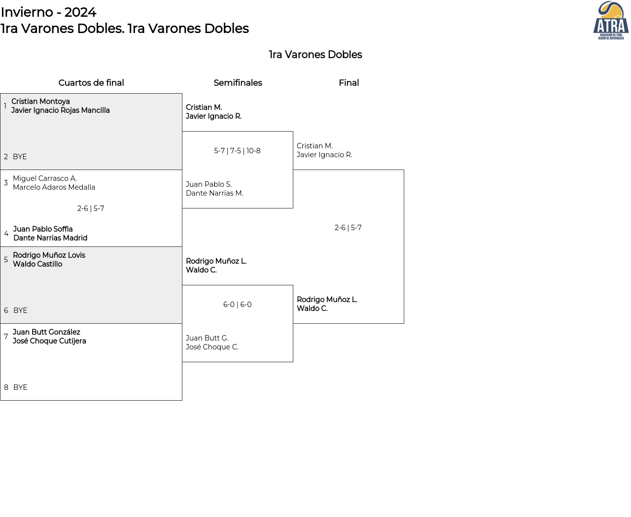Cuadro principal 1ra Varones Dobles