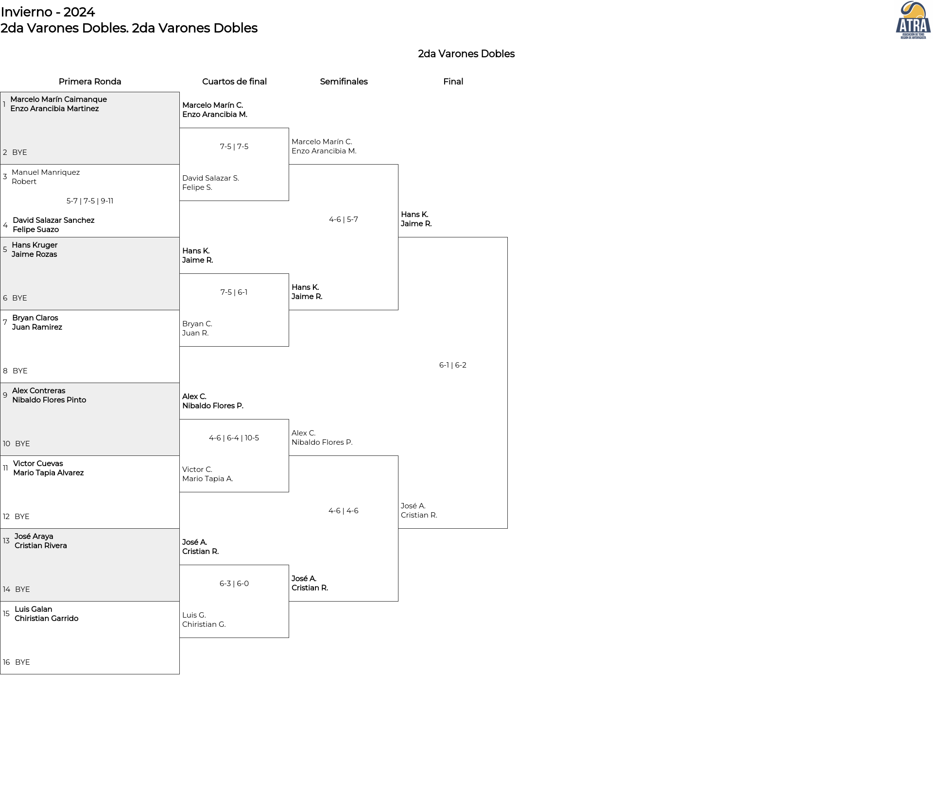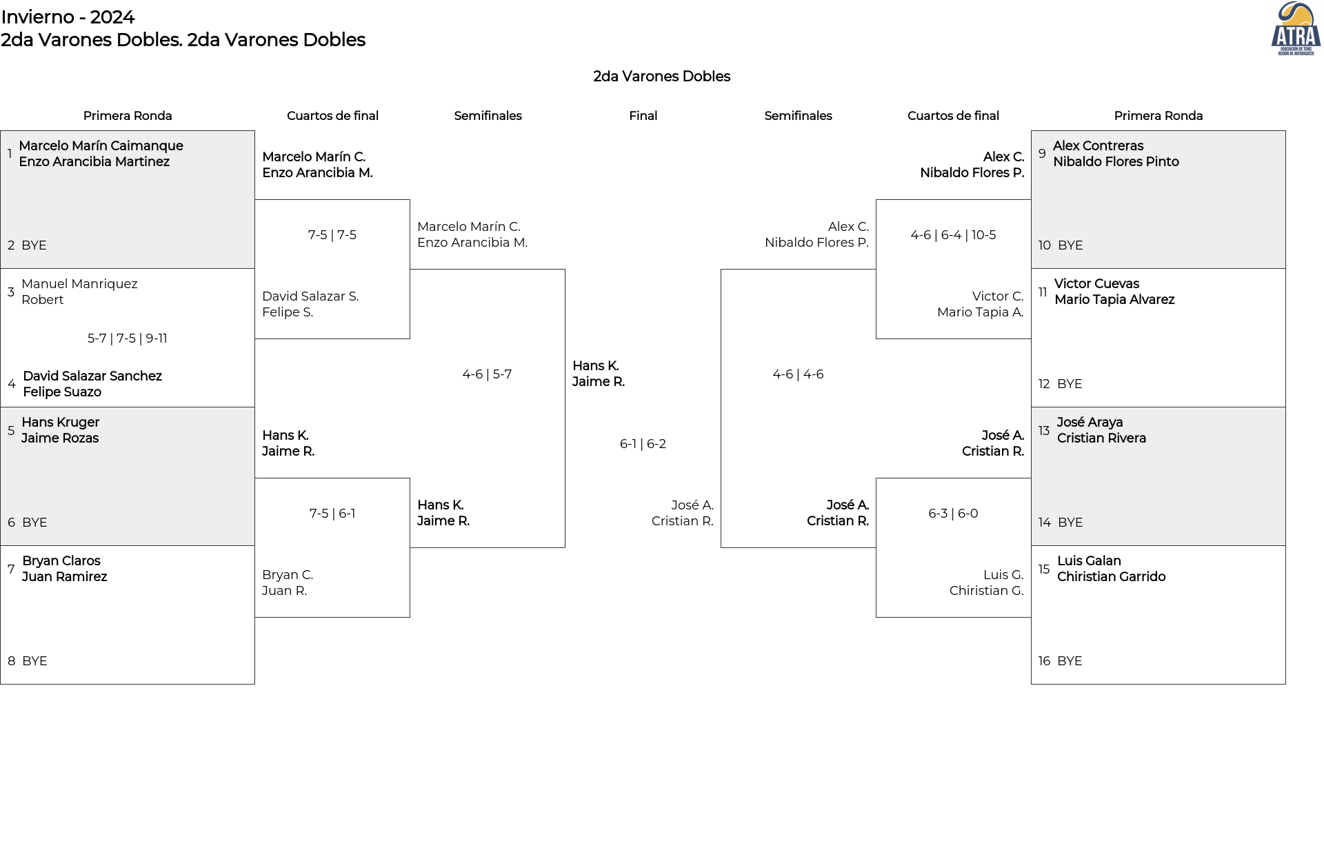 Cuadro principal 2da Varones Dobles