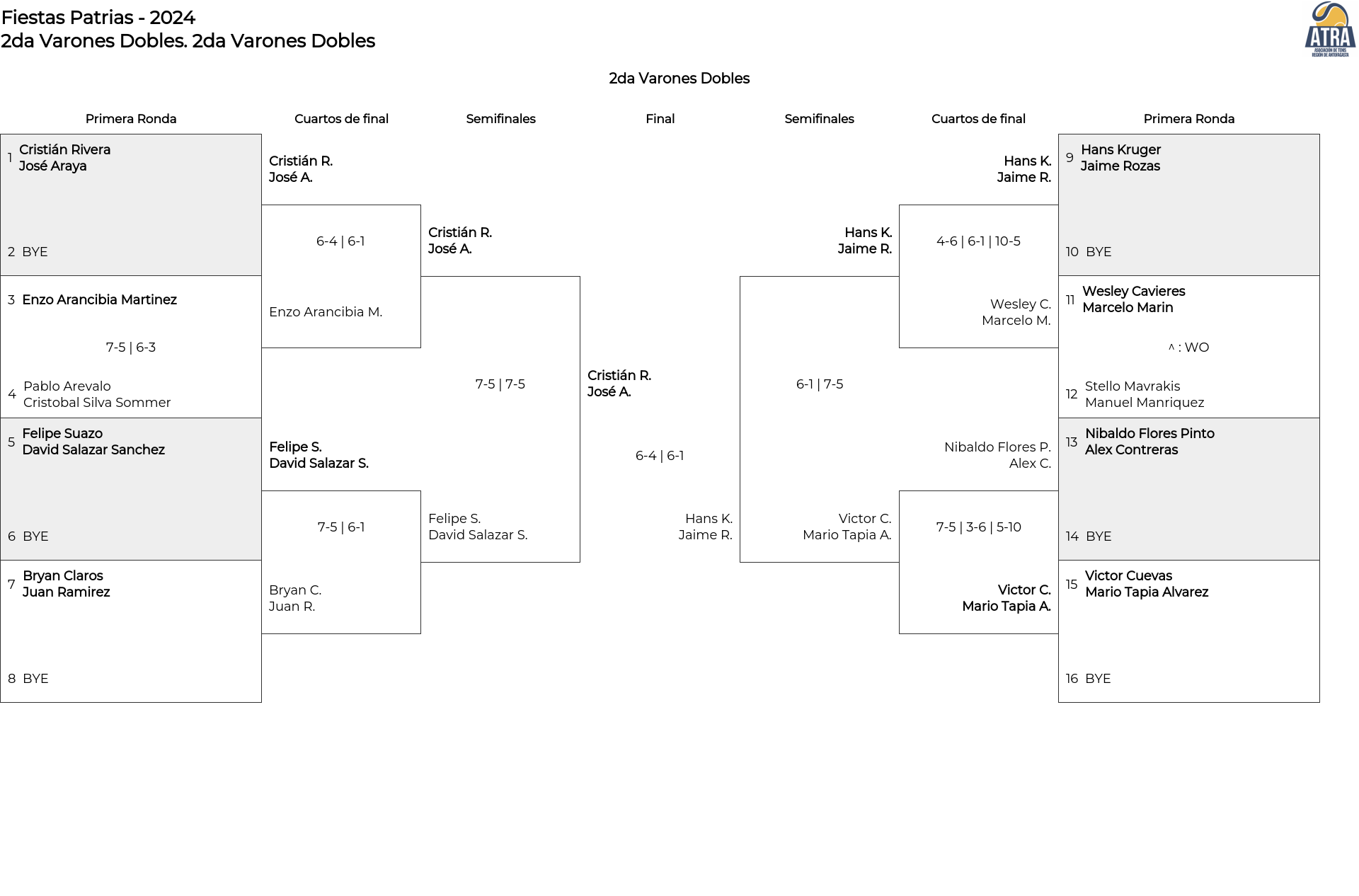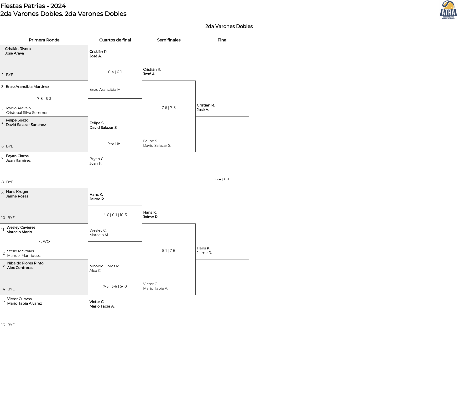 Cuadro principal 2da Varones Dobles