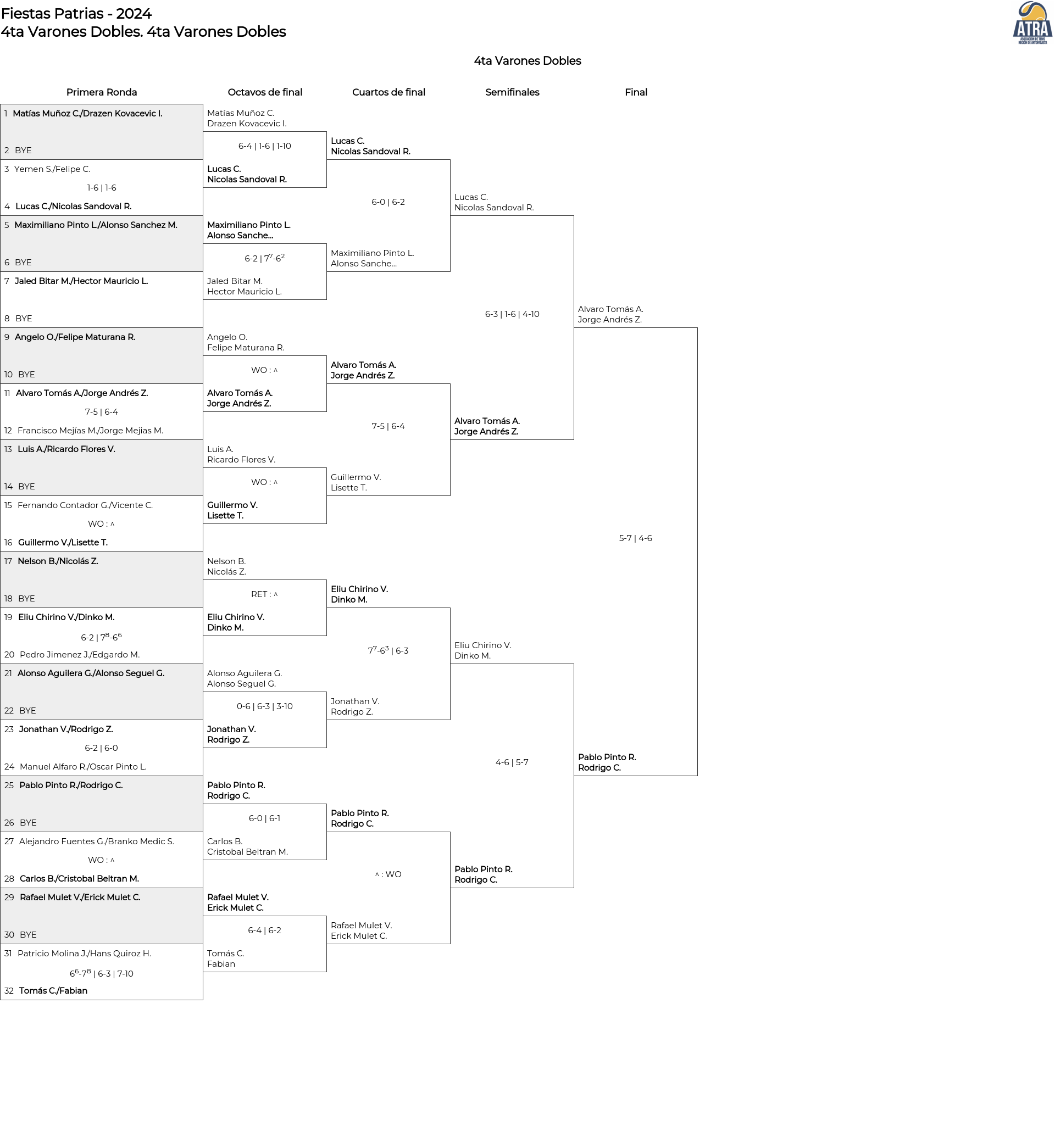 Cuadro principal 4ta Varones Dobles