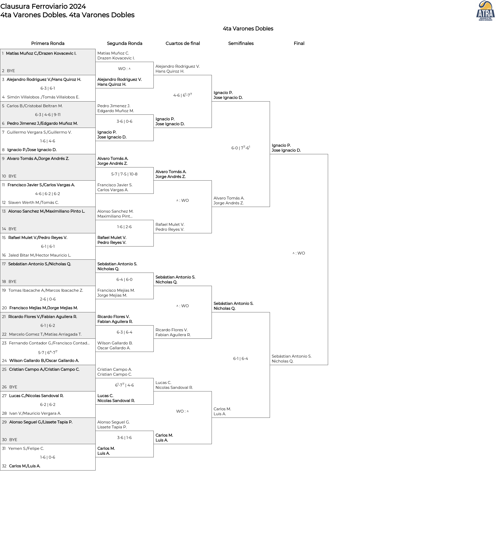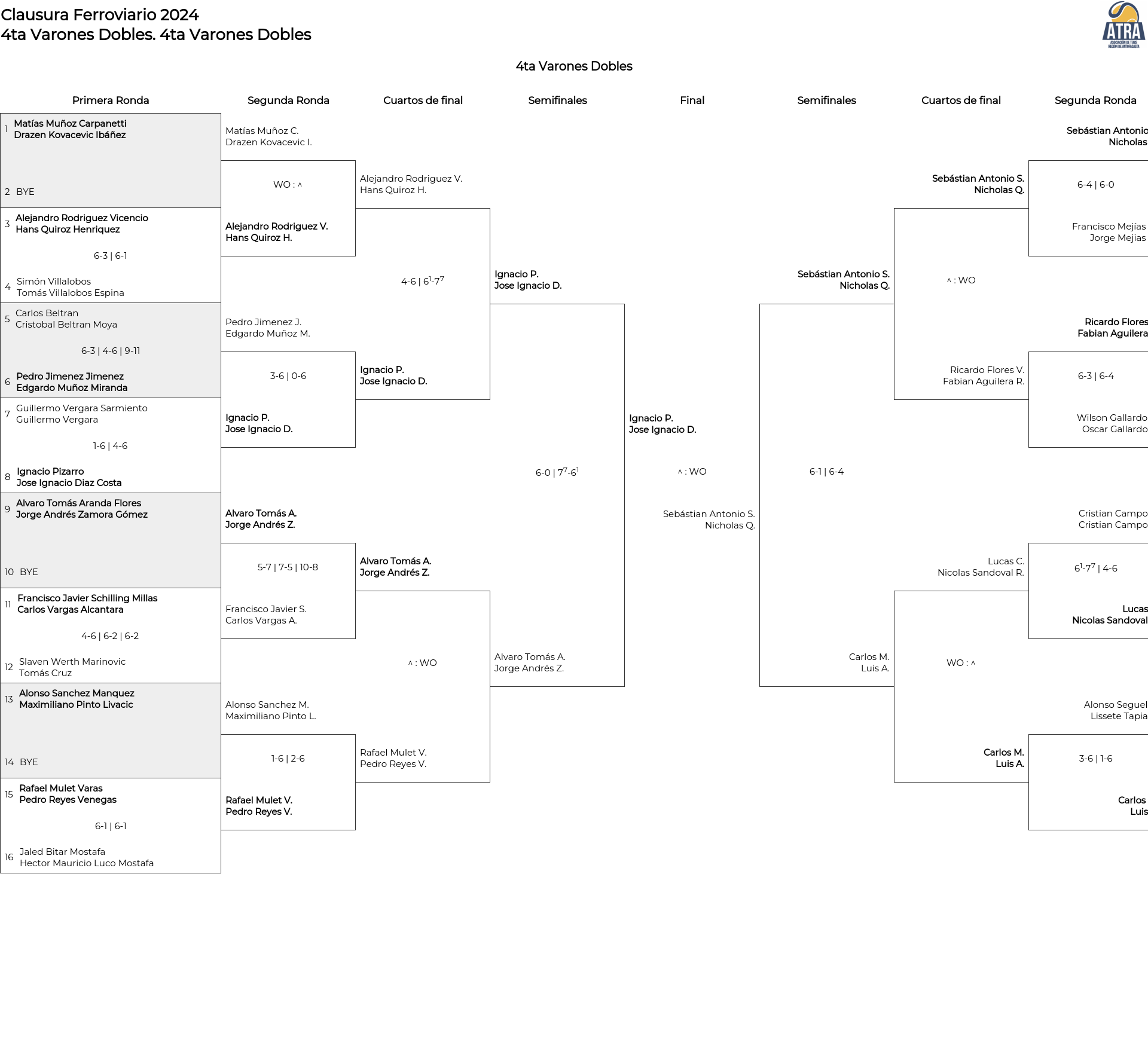Cuadro principal 4ta Varones Dobles