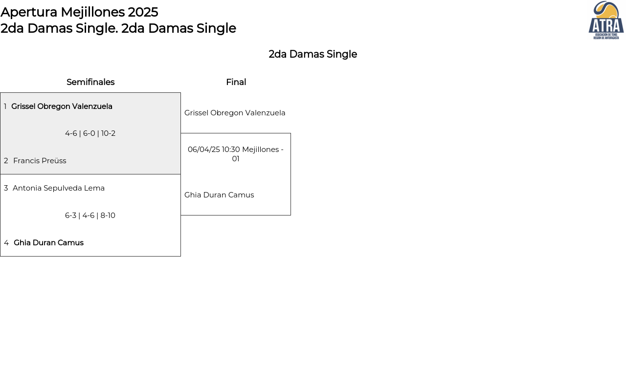 2da Damas Single . Desde 08/03/2025 08:00 hasta 06/04/2025 18:00