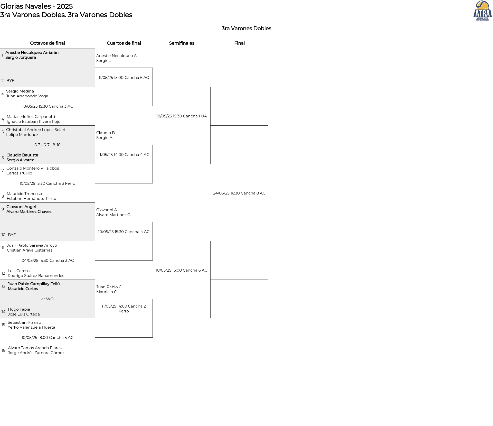 Cuadro principal 3ra Varones Dobles