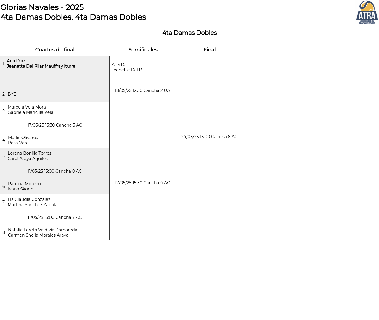 Cuadro principal 4ta Damas Dobles