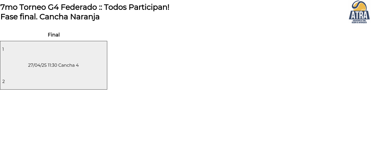 Cancha Naranja . Desde 27/04/2025 16:00 hasta 27/04/2025 16:00