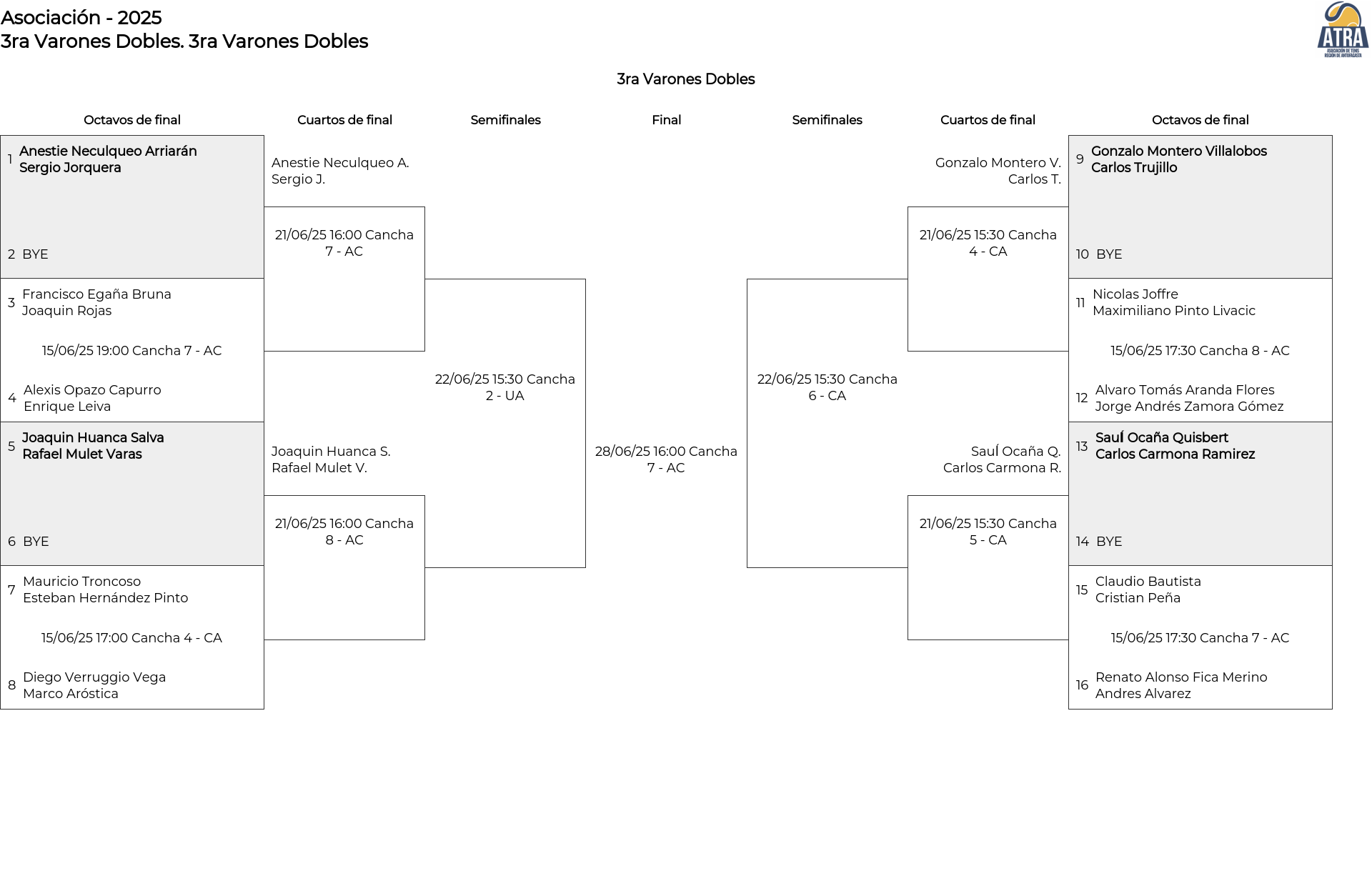 3ra Varones Dobles . Desde 07/06/2025 08:00 hasta 29/06/2025 20:00