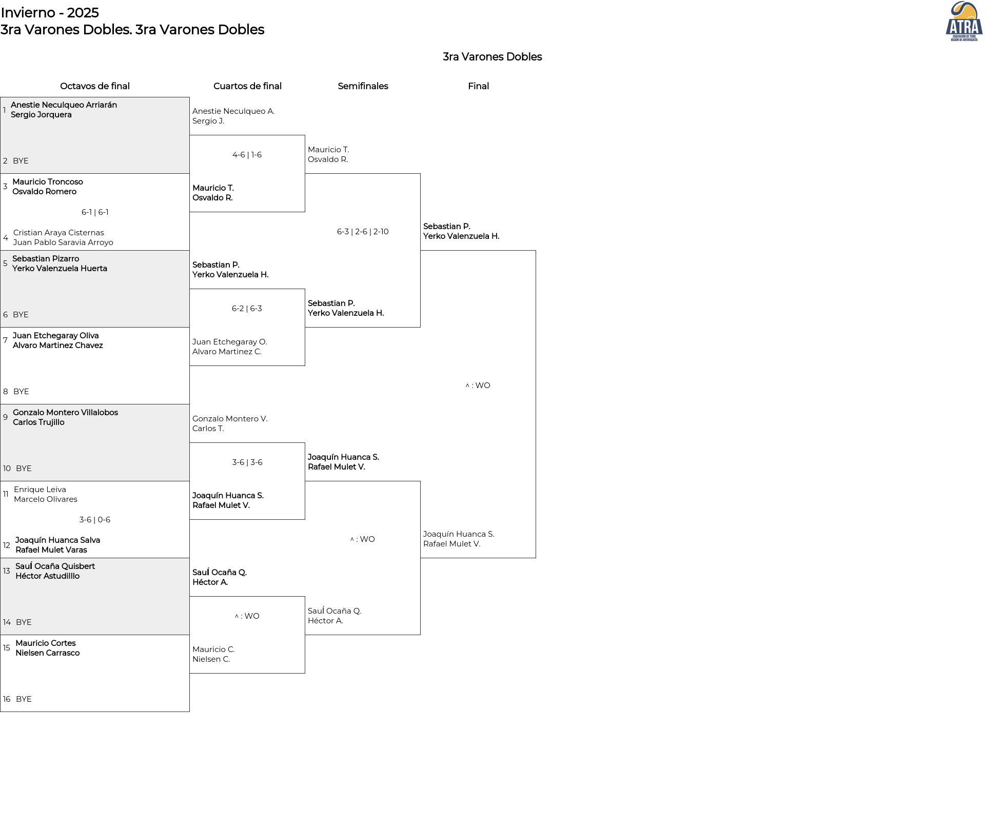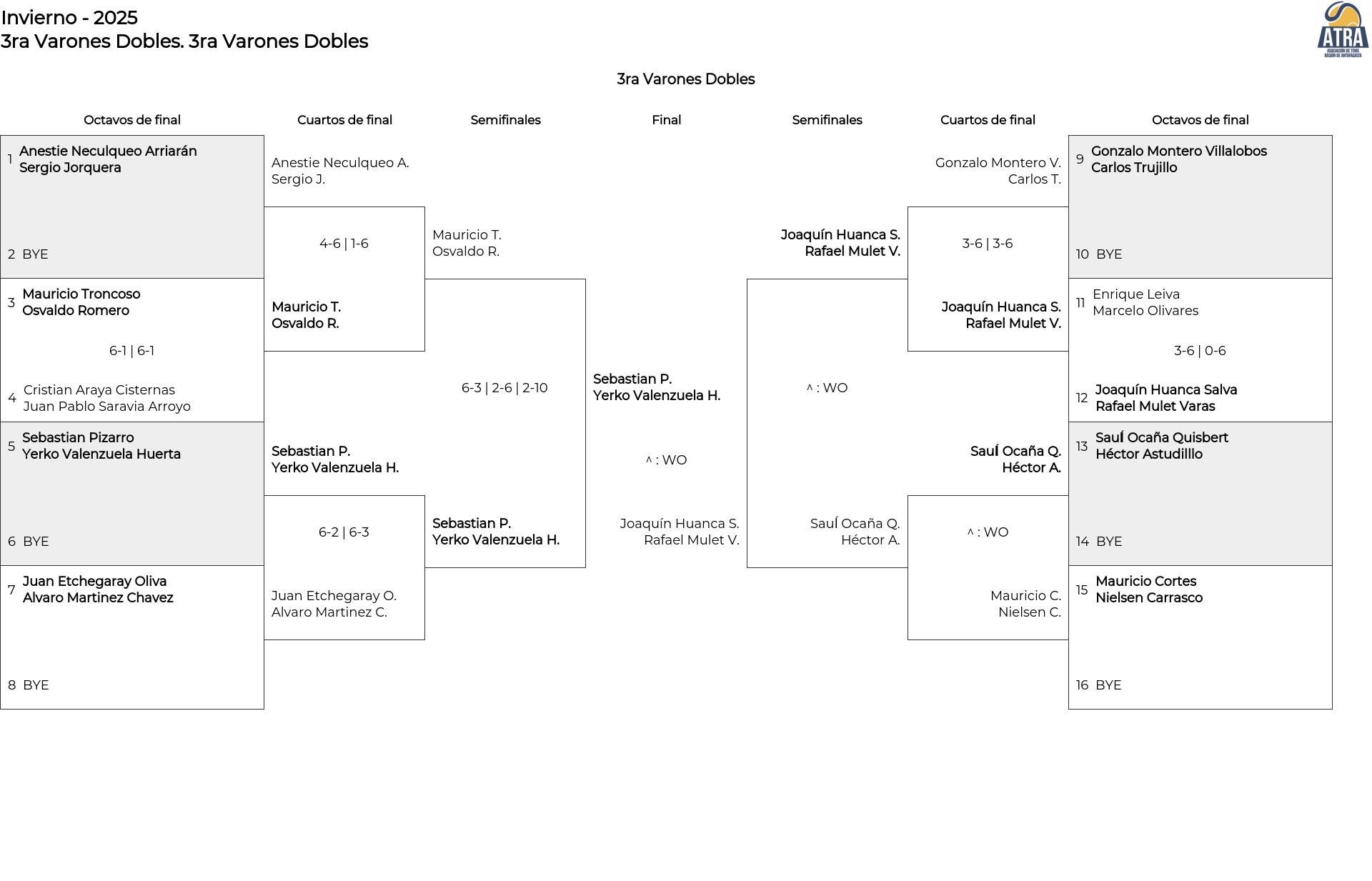 Cuadro principal 3ra Varones Dobles