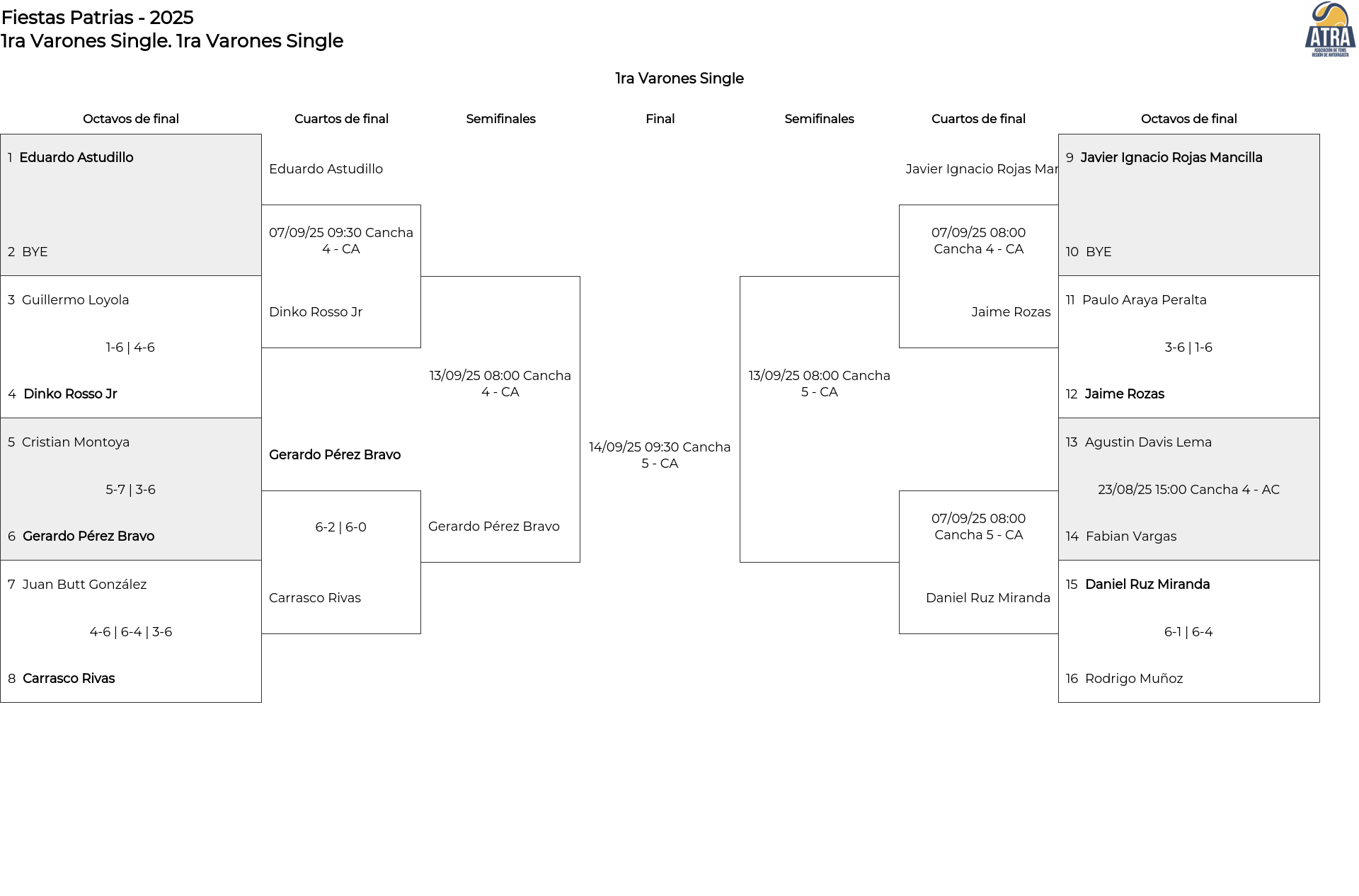 1ra Varones Single . Desde 23/08/2025 08:00 hasta 14/09/2025 18:00