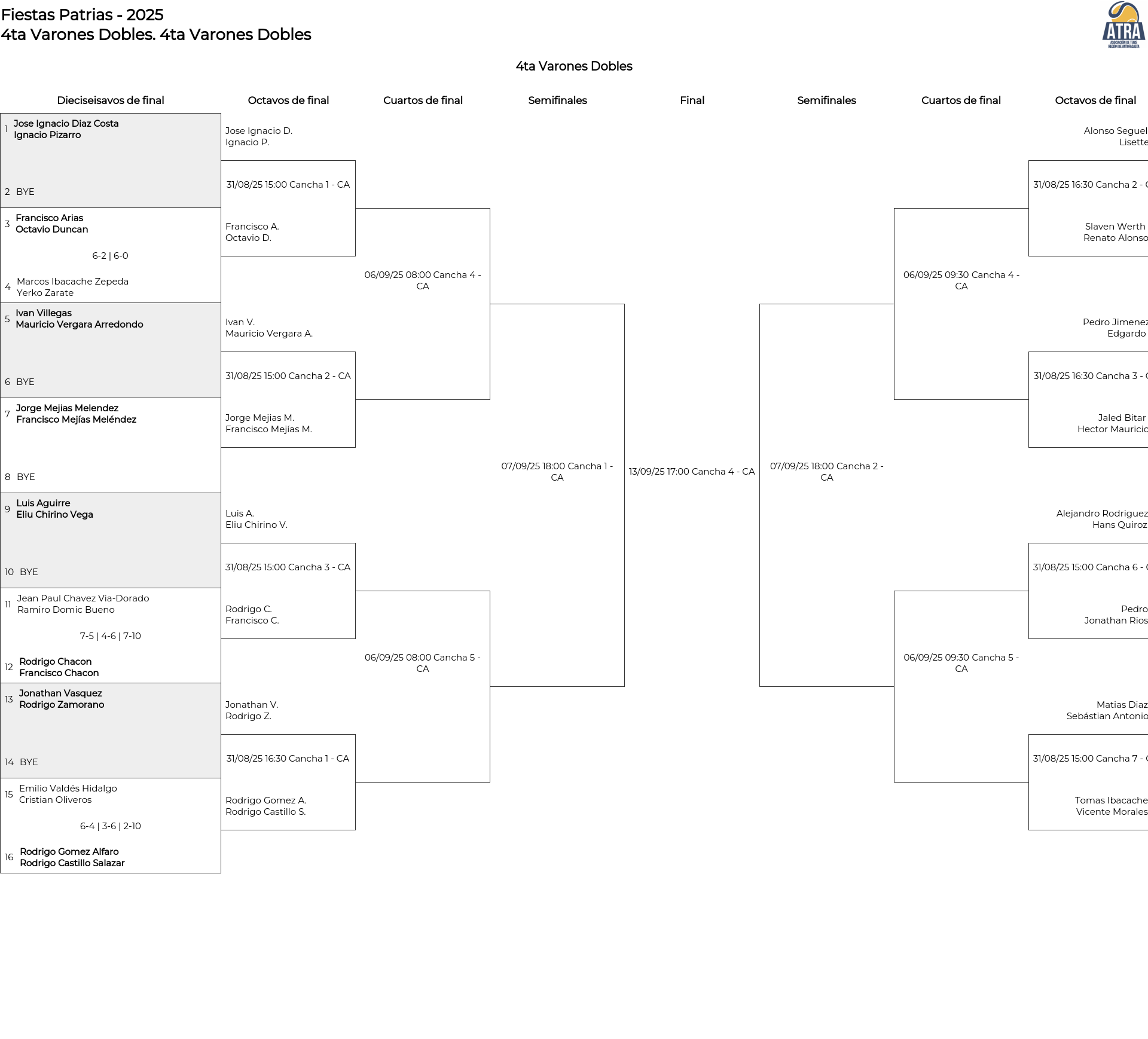 Cuadro principal 4ta Varones Dobles