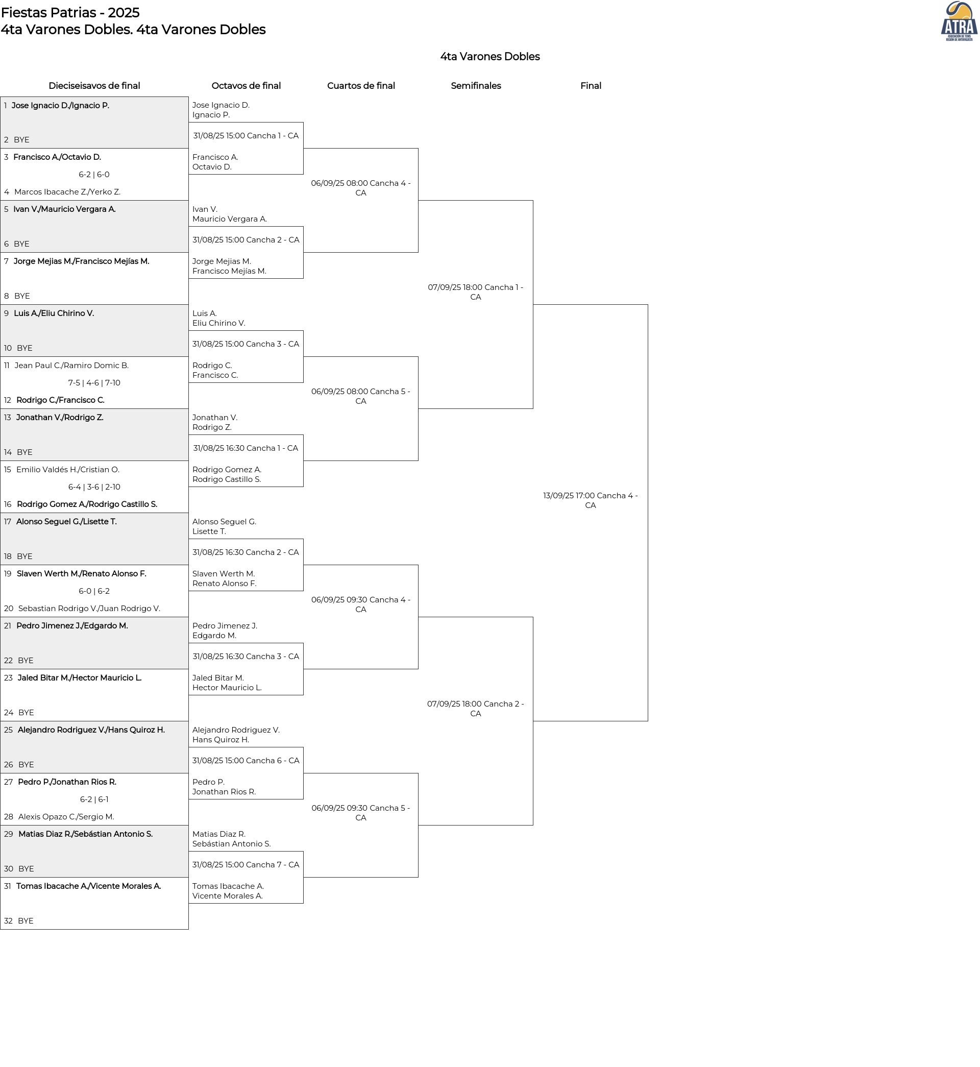 4ta Varones Dobles . Desde 23/08/2025 08:00 hasta 14/09/2025 18:00