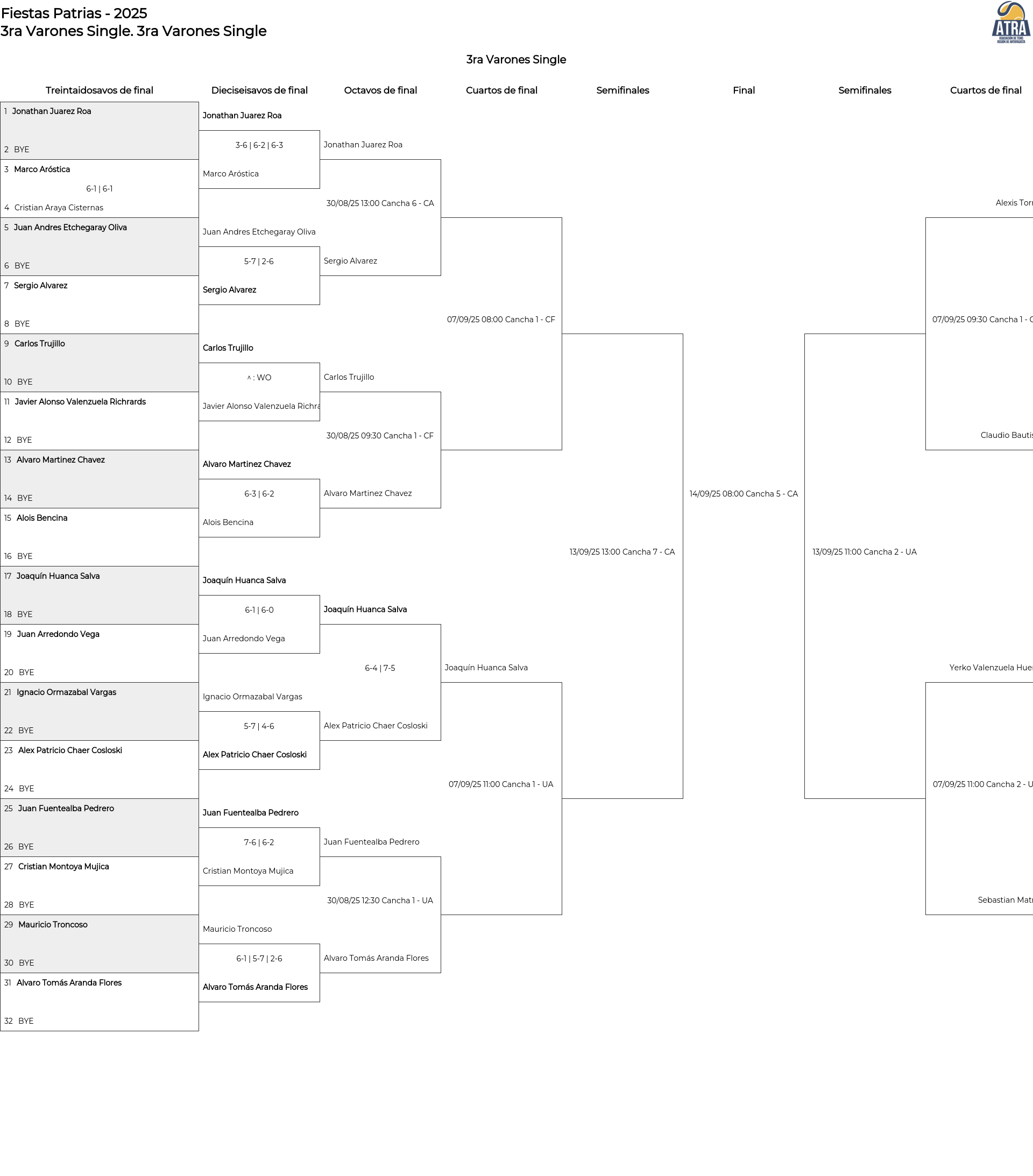 Cuadro principal 3ra Varones Single